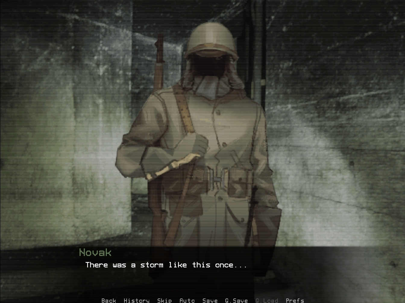 You are a soldier seeking shelter from a snowstorm in an endless winter. The bunker is occupied already.
